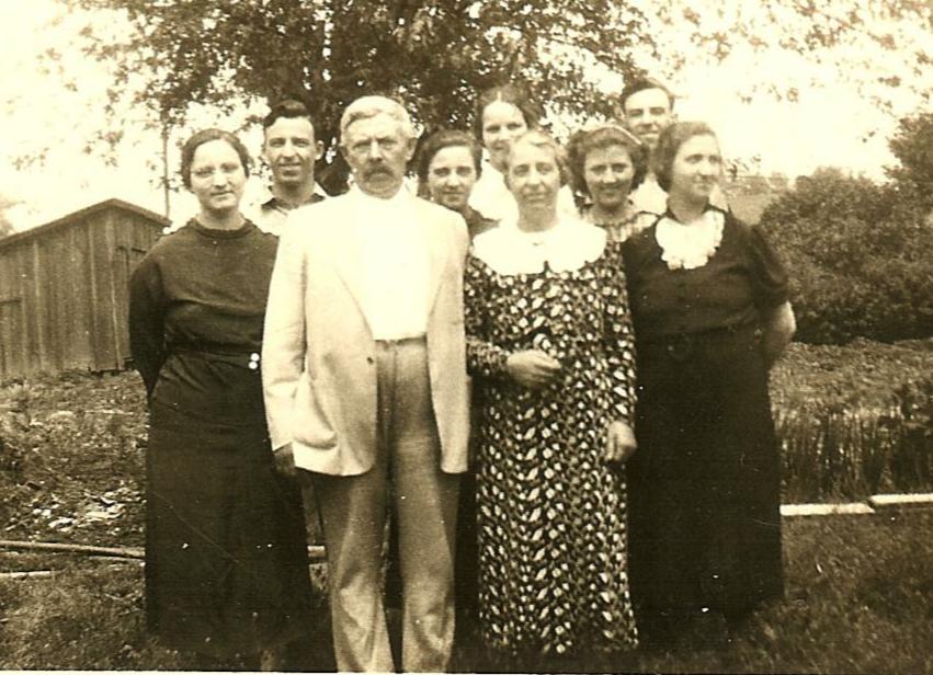 Hilda, Paul, Grandpa & Grandma Froese, Clara, Gladys (Art's wife), Kathleen, Art & Lena.jpg